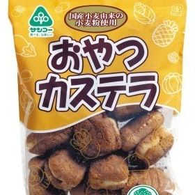 今日のおやつはなぁに?いろいろな形があるので、見た目も楽しいカステラです。国産小麦由来の小麦粉を主原料に、ほんのり甘くふっくらと焼き上げました。