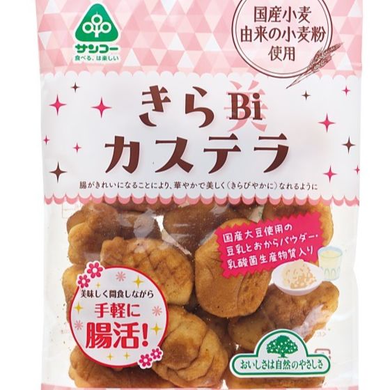 国産小麦由来の小麦粉を主原料に、腸内フローラを整えると言われている豆乳・おからパウダー・乳酸菌生産物質を加え、ふっくらと焼き上げたカステラです。