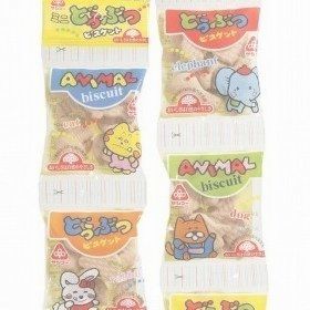国産小麦由来の小麦粉を主原料に、かわいい動物の形を焼き上げたビスケットを5連のつづりの小袋に入れたハンディータイプです。甘さを控えたシンプルな味です。
