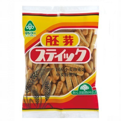 国産小麦由来の小麦粉を使用し、小麦胚芽を生地に練りこみ甘さをおさえ香ばしく焼き上げた、スティックタイプのビスケットです。