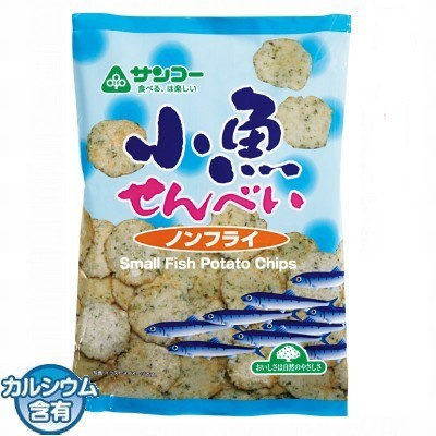 国産原料由来の馬鈴薯でん粉を主原料とした生地に片口いわし粉末を練り込んでパリッと焼き上げ、醤油ベースのタレでさっぱり味付けしたスナックです。