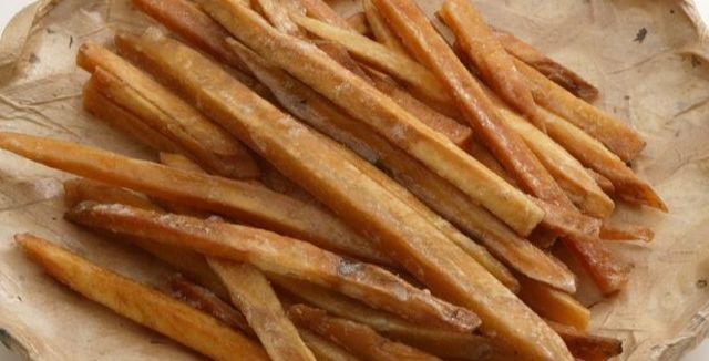 鹿児島産さつまいもの黄金千貫を細長くカットし、植物油でカリッとフライした後に、粗糖で味付けしました。