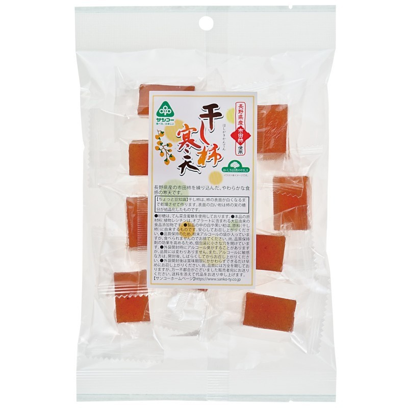 水飴(国内製造)、砂糖(てん菜(国産))、干し柿(柿(長野県産))、寒天、オブラート/植物レシチン