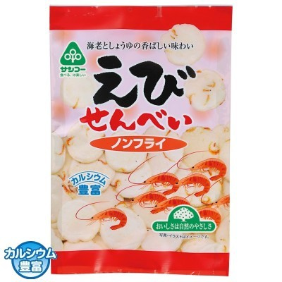膨張剤不使用。国産原料由来の馬鈴薯でん粉が主原料の生地にえび・いかを練り込み、オキアミを乗せて焼き上げまして。さっぱりとした醤油味のノンフライせんべいです。