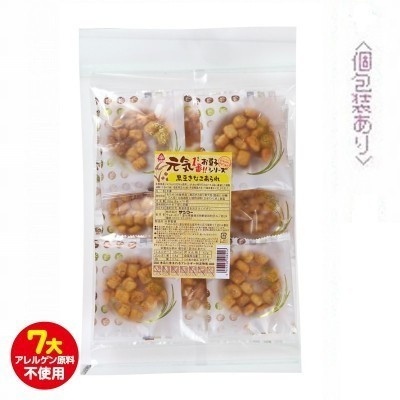 国産黒豆のきな粉をまぶしたあられです。7大アレルゲン不使用。