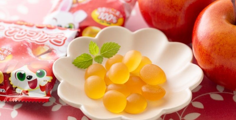 国産りんごの濃縮果汁を100%(生果汁換算)使用。香料を使用していないグミです。