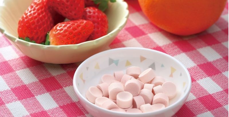 オレンジといちごの濃縮果汁を使用したラムネです。2種類の味をお楽しみください。
