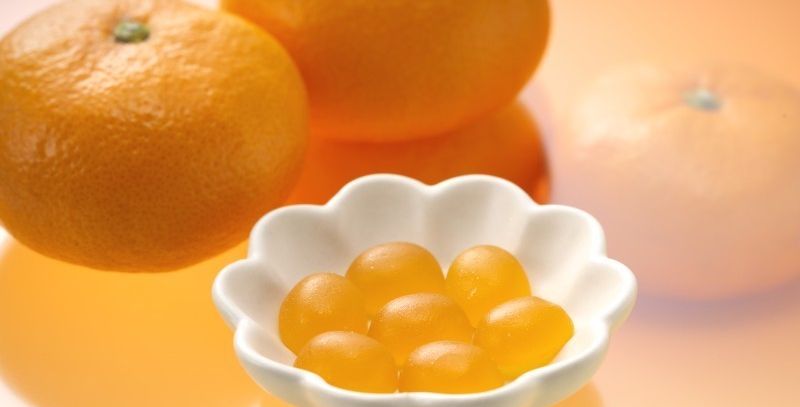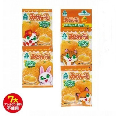 水飴(国内製造)、砂糖(てん菜(国産))、濃縮うんしゅうみかん果汁(うんしゅうみかん(国産))、ゼラチン、粉末オブラート、食用油脂/酸味料(クエン酸)、ゲル化剤(ペクチン)、光沢剤