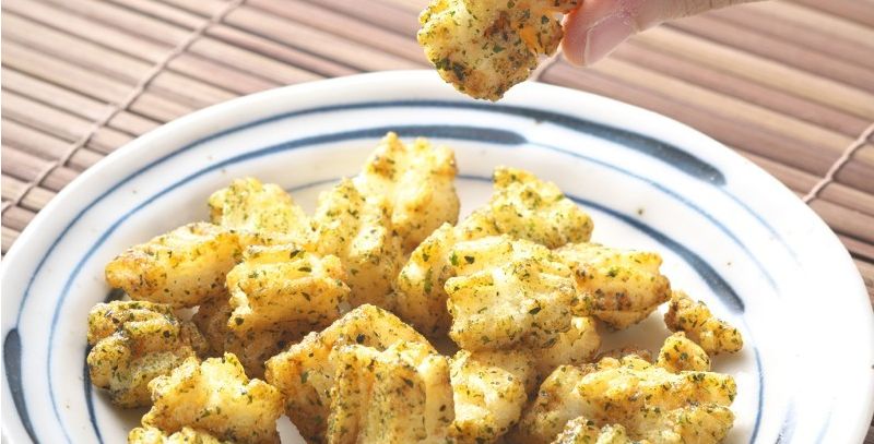 新潟産もち米で作ったお餅を揚げ、あまから味に仕上げました。アオサ・青のりの風味が食欲をそそります。