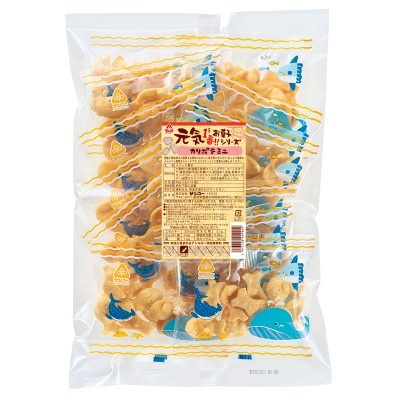 国産小麦由来の小麦粉を主原料に、かわいい魚の形に仕上げた、あっさり塩味のカルシウム豊富なスナックです。カリカリッとした食感をお楽しみください。