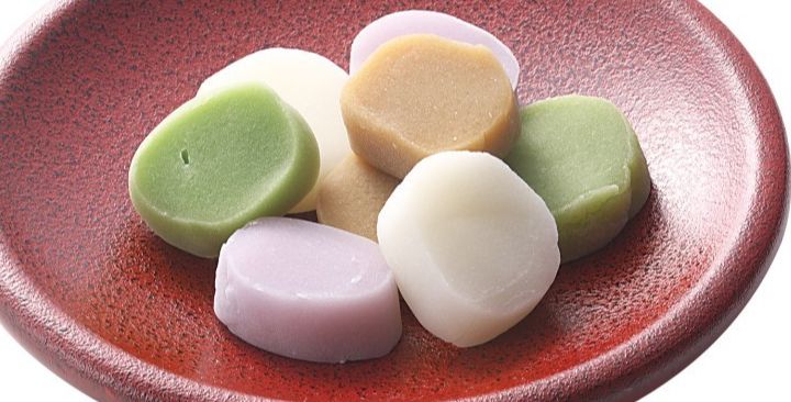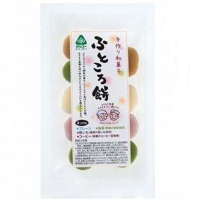 もちもち柔らか、お餅菓子。プレーン・紫芋・抹茶・コーヒーの、4つの味です。